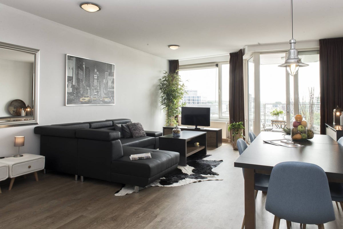 ** A spacious 2 bedroom apartment available from 1 February **- Layout -The apartment has a spacious living room with semi-open kitchen, equipped with Bosch built-in appliances: an induction hob with extractor hood, combi-microwave, dishwasher, refrigerator and a freezer. Everything to prepare delicious meals from your own kitchen. The apartment has no less than two bedrooms on the 9th floor wi…