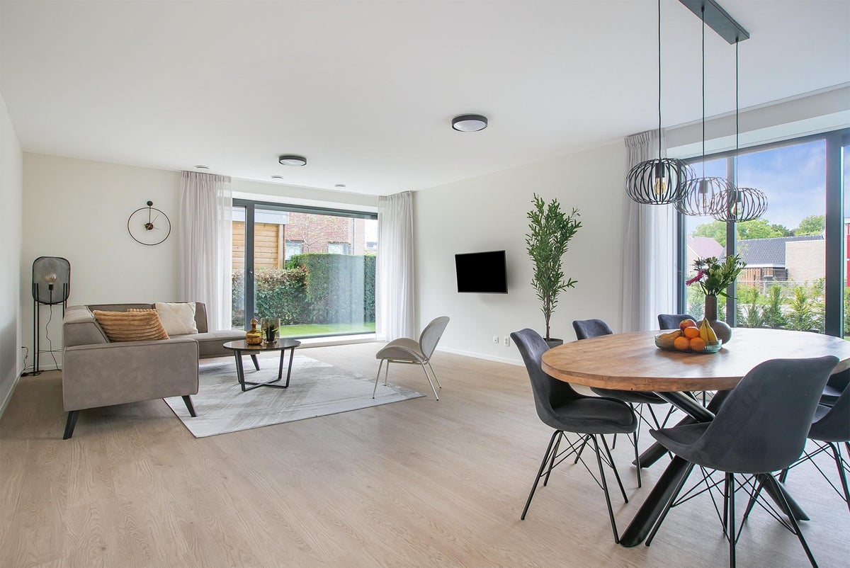 Fully furnished three-room apartment of approximately 91m². The apartment is located on the ground floor and features a private storage and a beautifully landscaped, sunny garden facing southeast.You can find the apartment in the building ‘Residence Anna,’ a newly constructed and highly luxurious complex with 2 workspaces and 12 exquisite rental apartments in the Rijnhuizen district… A green …